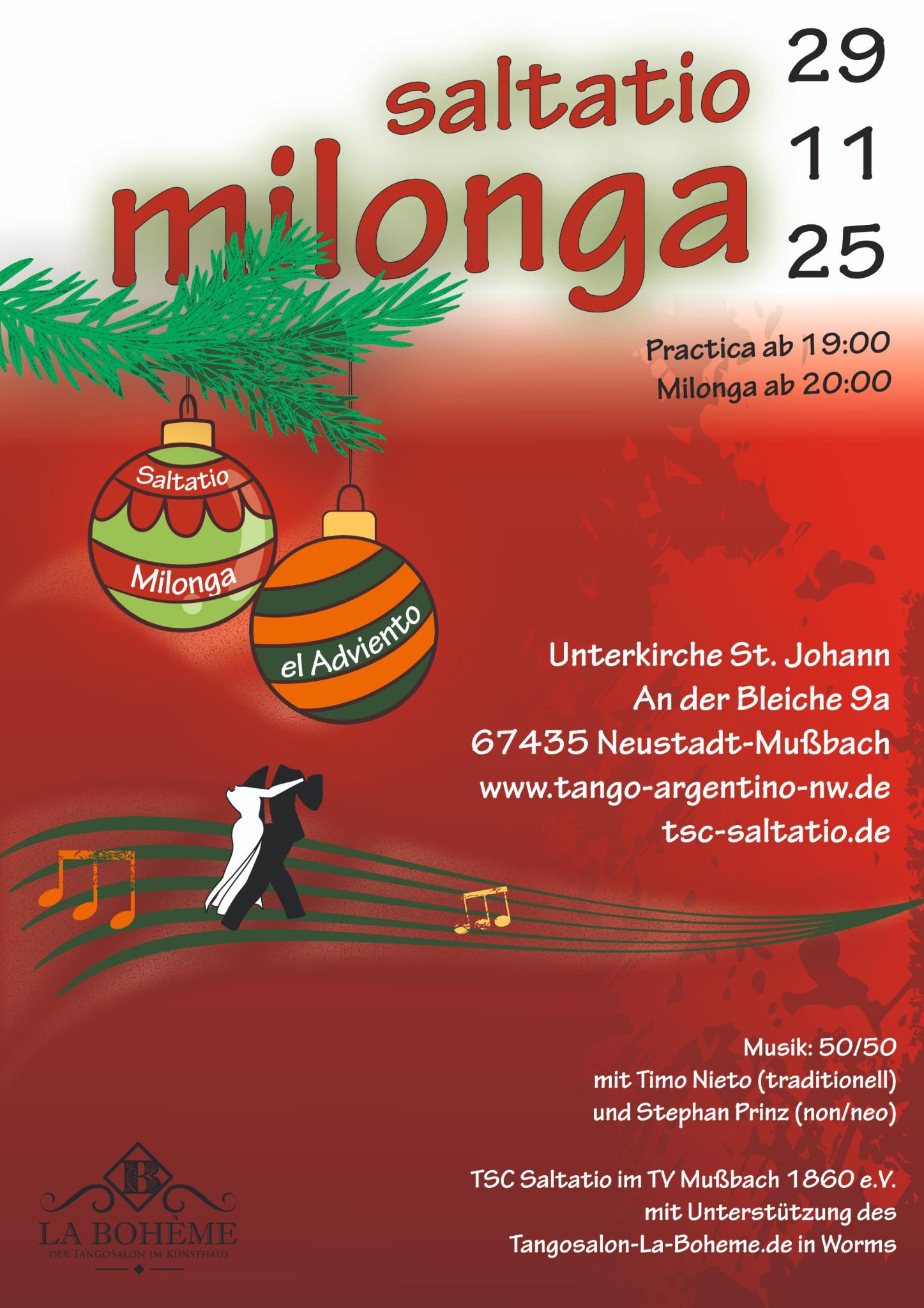 Weitere Details findet ihr unter https://www.rhein-neckar-tango.de/veranstaltung/saltatio-milonga-adviento/
