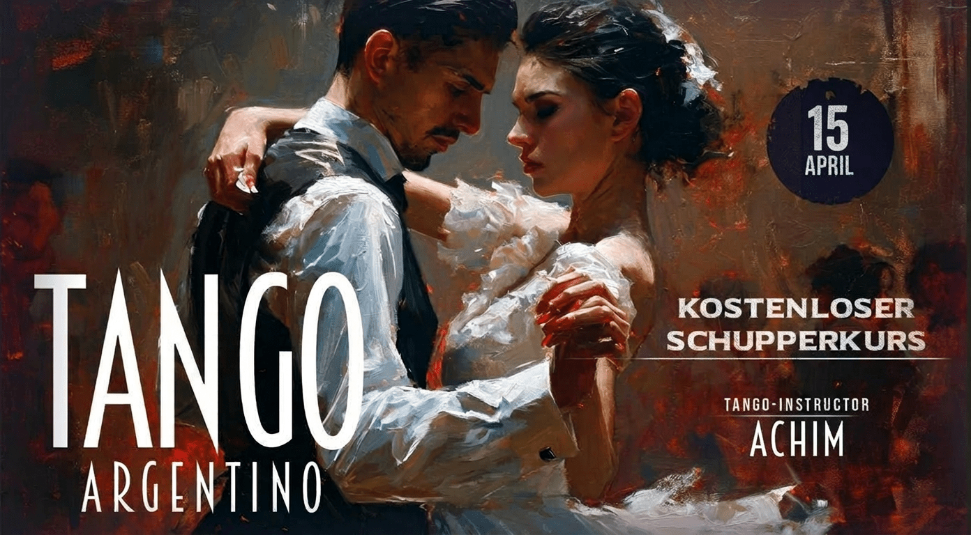 In lockerer Runde lernst Du die ersten Schritte, die Umarmung und das Miteinander im Tango kennen – spielerisch, humorvoll und gut erklärt, sodass sich auch absolute Einsteiger wohlfühlen. Du brauchst keine besondere Kleidung und kannst allein oder mit PartnerIn kommen; vor Ort finden sich erfahrungsgemäß immer passende Pendants.