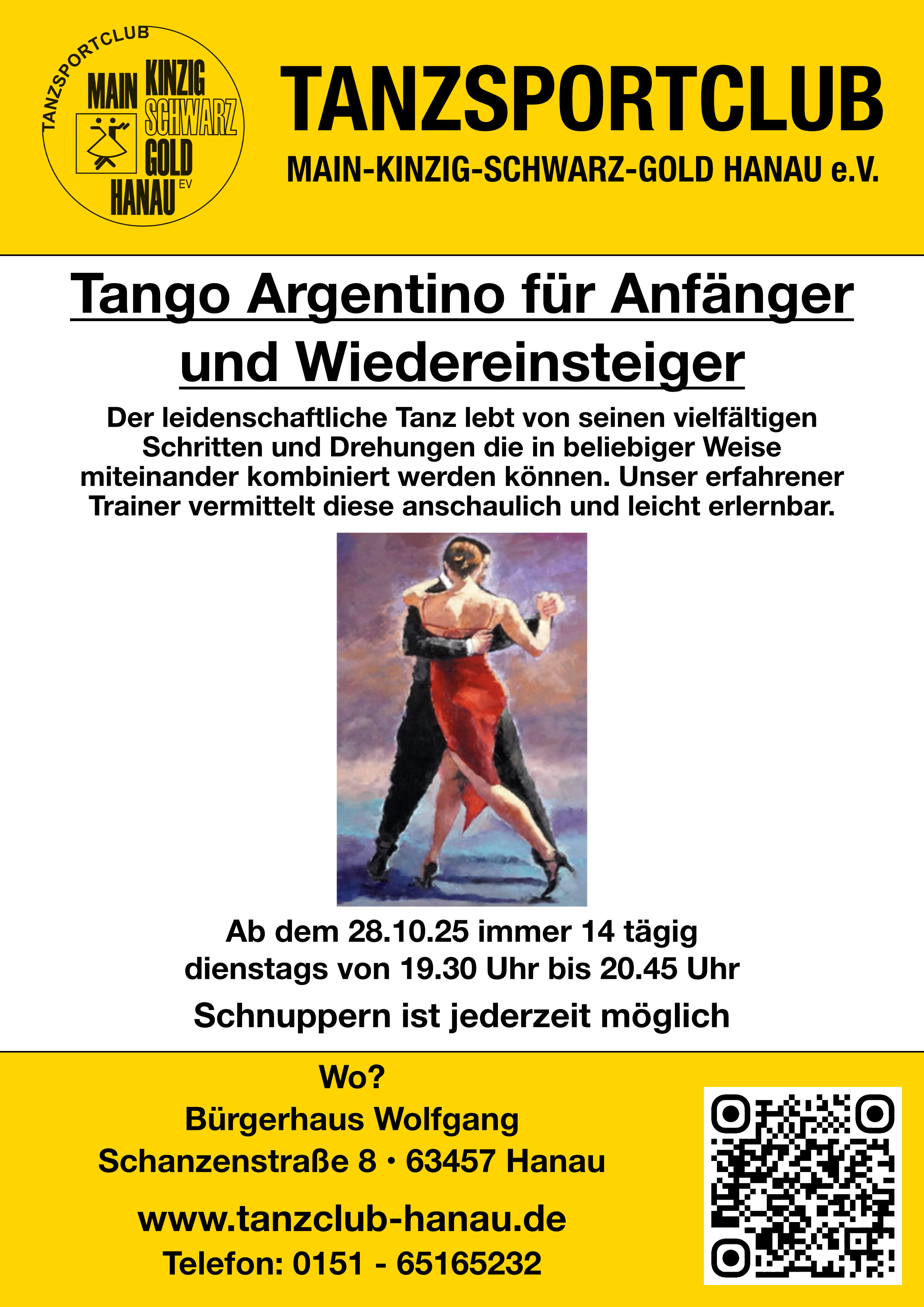Dienstagabend noch nichts vor? Wie wäre es mit einer Schnupperstunde Tango Argentino in Hanau? Für Neueinsteiger, Wiedereinsteiger und welche, die es werden wollen. Da könnt ihr dann entspannt herausfinden, wie der Tango funktioniert und ob er etwas für euch sein könnte. Wir unterrichten Tango de Salon mit dem Ziel einer engen Umarmung. Dabei legen wir viel Wert auf Haltung, Technik und auf eine klare und sanfte Führung. An die erfahrenen Tänzer: Vielleicht kennt ihr jemanden, der sich für den Tango interessiert und bislang noch keinen Einstig finden konnte. Dann schickt sie und/oder ihn einfach bei uns vorbei. Und wenn ihr selber interessiert seid: Der Kurs für Fortgeschrittene geht von 20:45 bis 22:00.