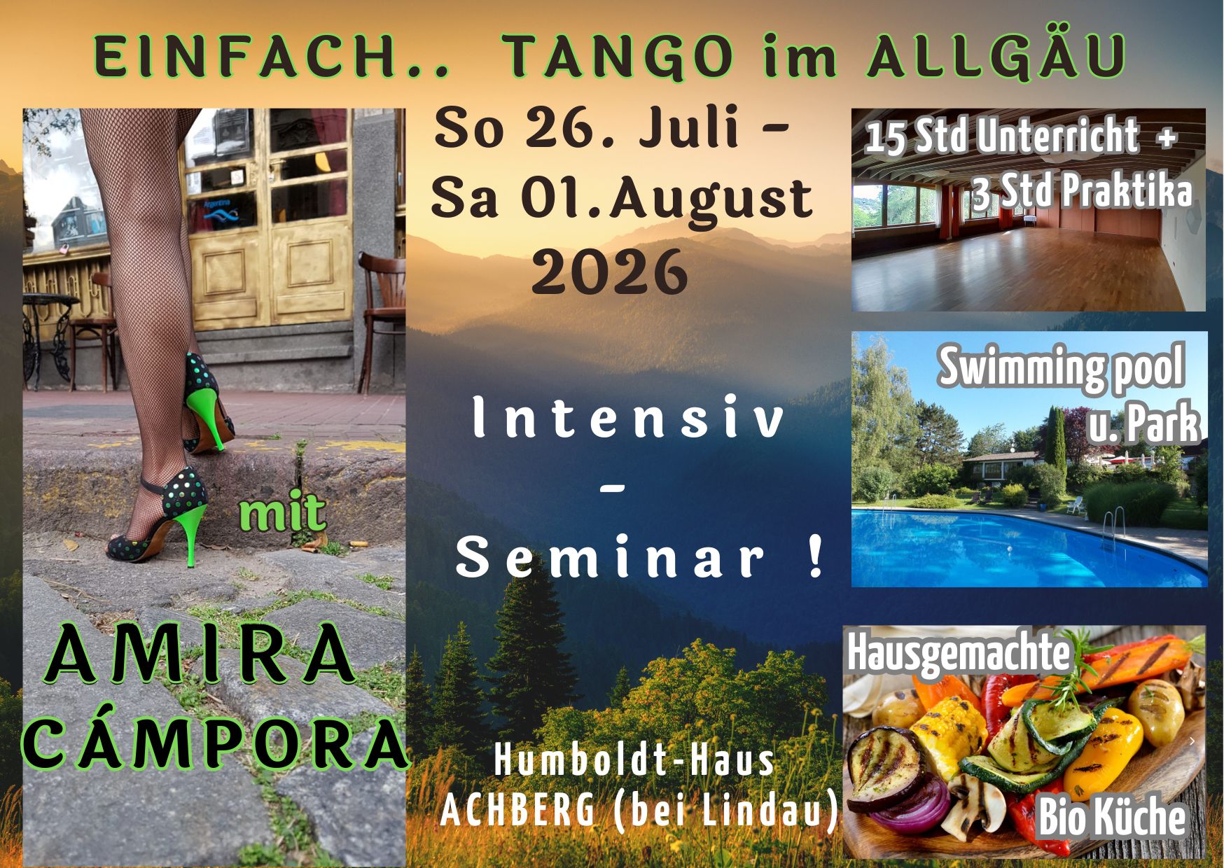 Alpen, Allgäu, Bodensee - Natur pur! Eine der schönsten Landschaften Deutschlands! Gutes vegetarisches und veganes Essen mit vielen Zutaten aus der Region und biologisch-dynamischer Landwirtschaft Perfekte Bedingungen für ein Tango Intensiv- Seminar! Sonntag, 26. Juli – Anreise (ab 15:00 Check- in) Begrüßungsmilonga bei „Último Domingo“ 15.30 -19.00 Uhr Begrüßungsabendessen 19.30 Uhr Montag, 27. […]