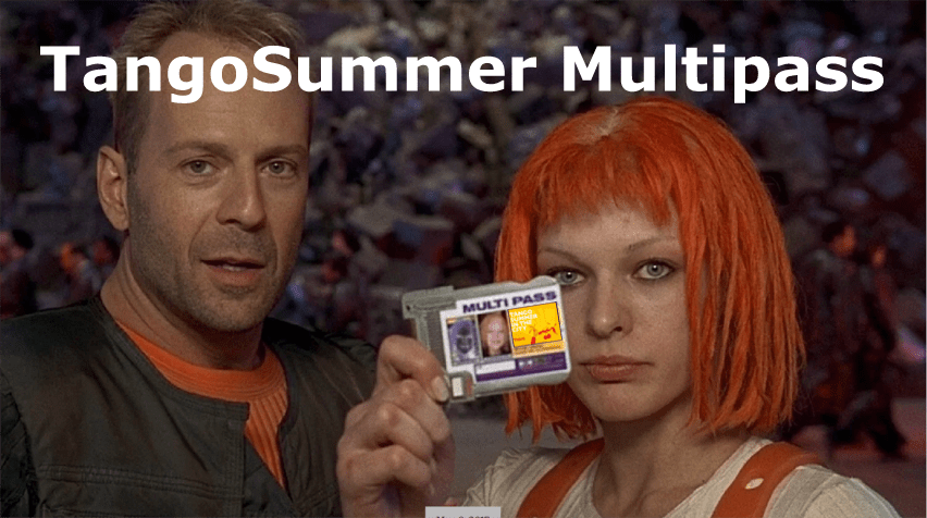 1 Pass und Zutritt zu allen 7 Milongas und 1 Pass und Teilnahme an allen Exklusiv und Standard und Workshops