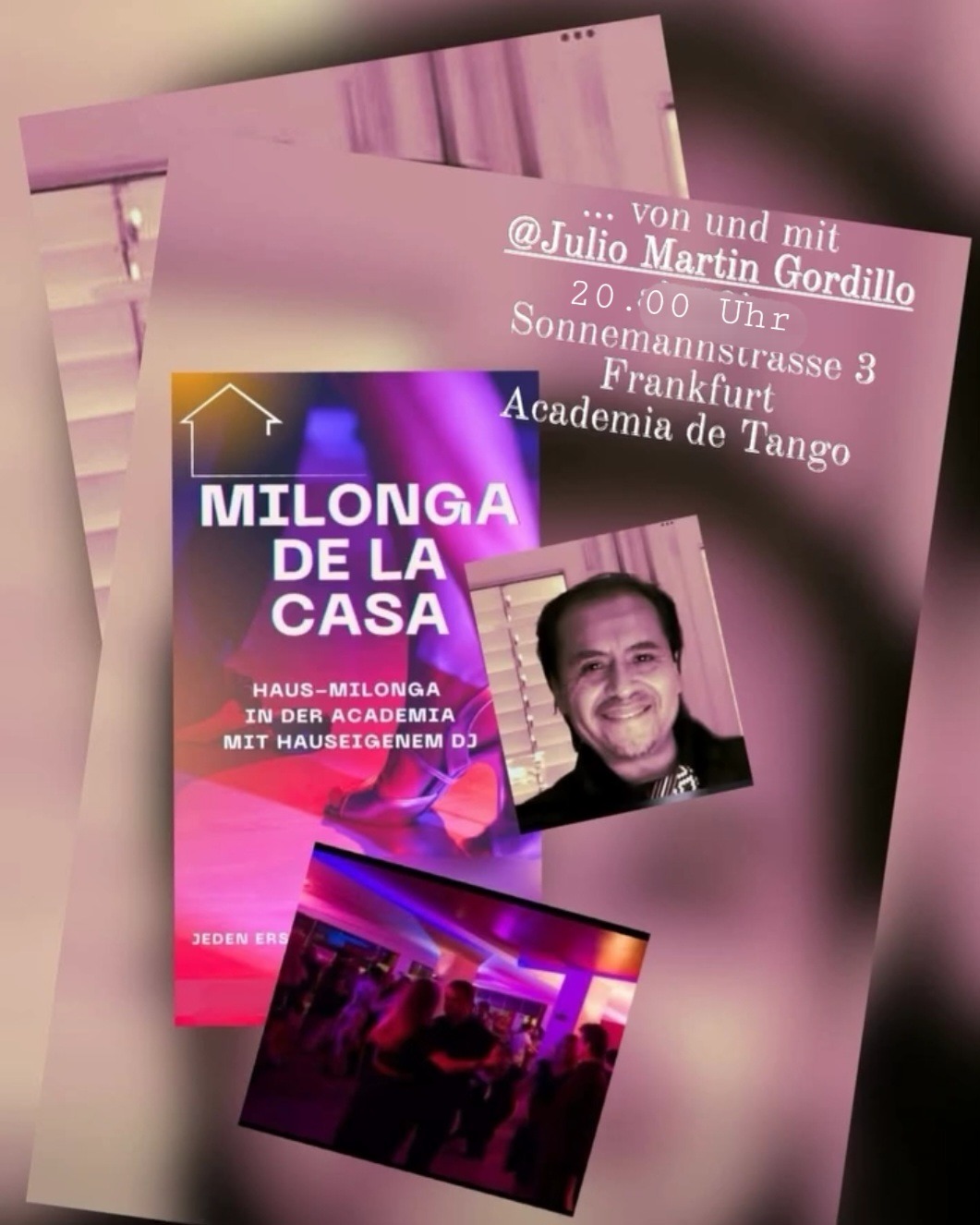 ACADEMIA DE TANGO Sonnemannstr. 3-5, Frankfurt am Main, GermanyJeden 3. Samstag von 20 Uhr bis Mitternacht. ACADEMIA DE TANGO - Sonnemannstr. 3 - Frankfurt mit hauseigenem DJ Julio Martin Gordillo.